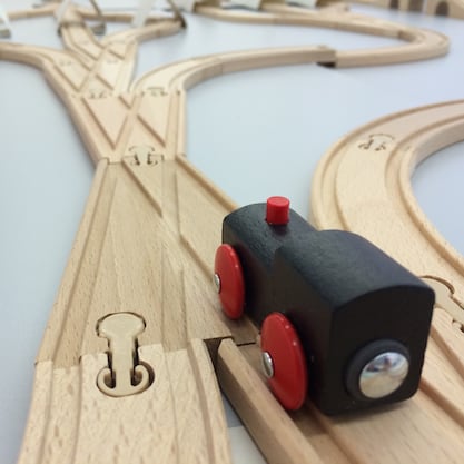 two switches to split and join the track, requiring the train engine to decide which track to take |